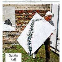 Als Dieter Mammel diese Bilder fertigte, so hat er bei der Eröffnung erzählt, malte er sich den Schnee herbei, der heute in der Regel fehlt. Ausgerechnet in diesem Winter, in dem der (auch) in Berlin lebende Künstler sie in der Galerie Poll zeigt, liegt einmal Schnee. Seinen Gemälden tut das keinen Abbruch. Auf naturfarbenem Leinen formte Mammel mit Grundierweiß meist menschenleere Landschaften, in denen Schemen von Zäunen, Häusern, Nadelbäumen, Wasserläufen jenen Eindruck von Zeitlosigkeit wecken, den auch realer Schnee hervorruft. Farblos aber wirken die Gemälde nicht. Das Leinen sowie Kontraste von Hell und Dunkel lassen jene Töne ahnen, die in Weiß enthalten sind – viel Warm im Kalten.